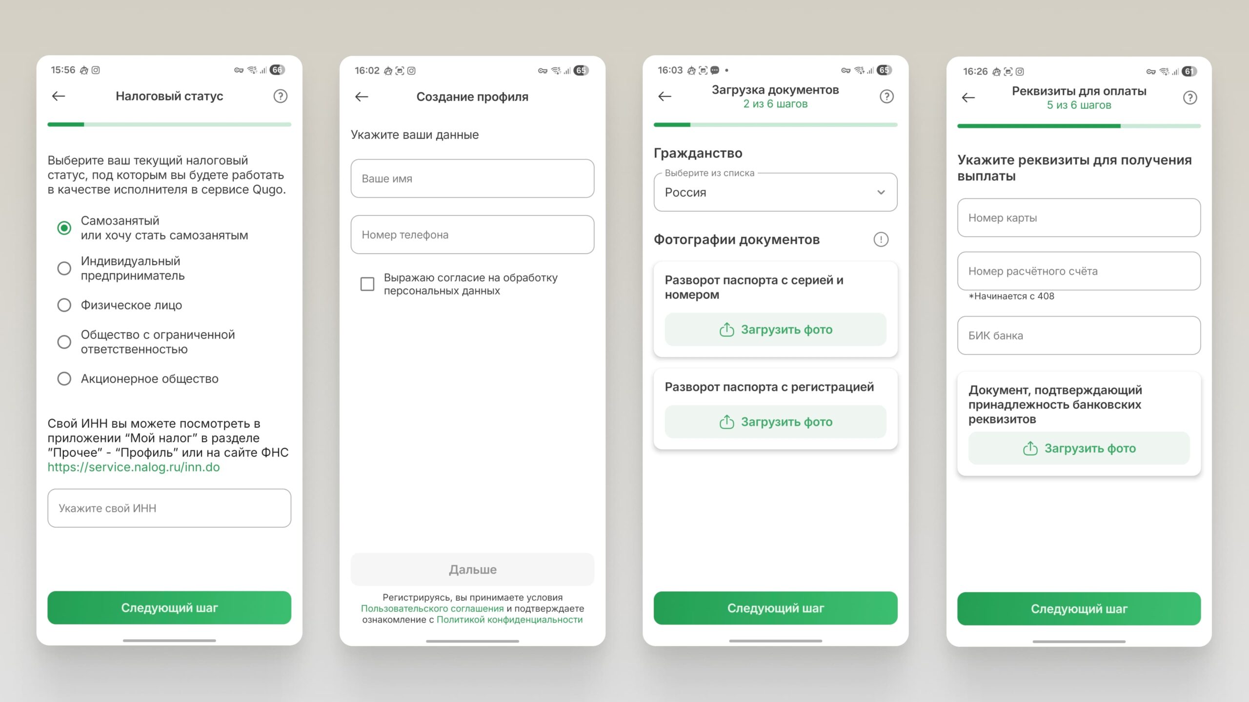 Откройте сайт qugo.ru или запустите мобильное приложение Qugo. Перейдите к созданию профиля: