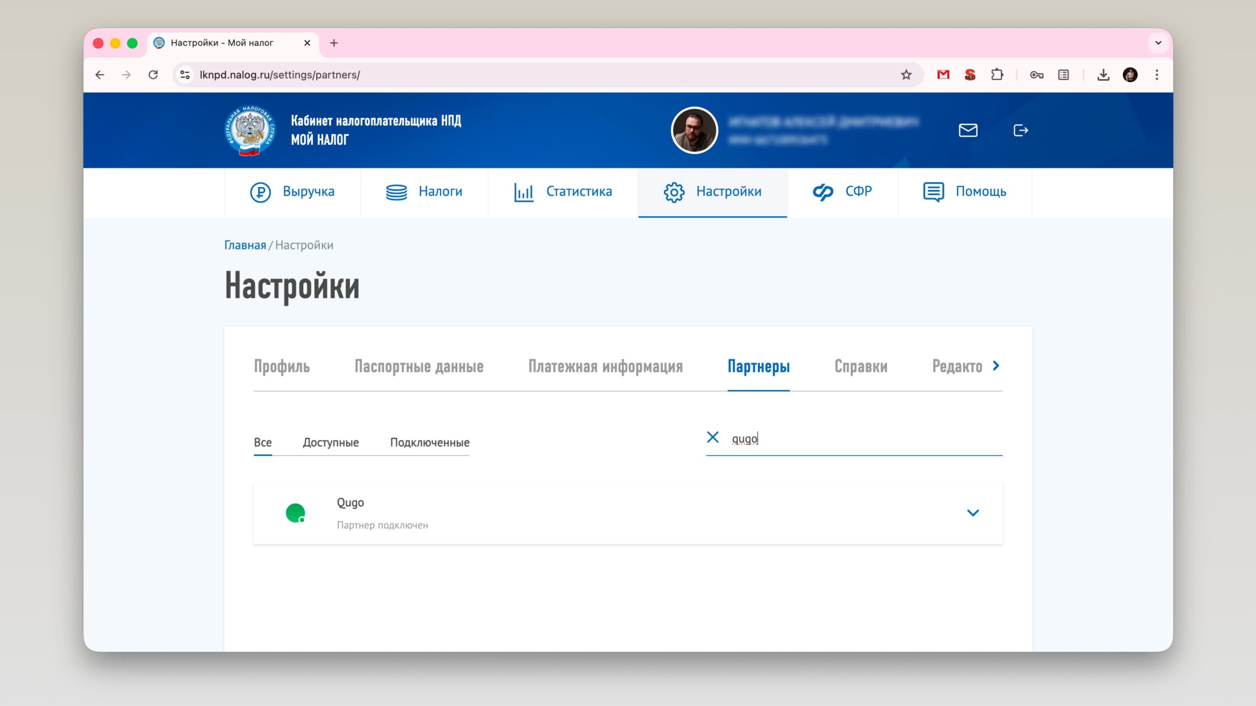 Чтобы всё это заработало, сервис Qugo нужно подключить как партнёра в приложении «Мой налог».